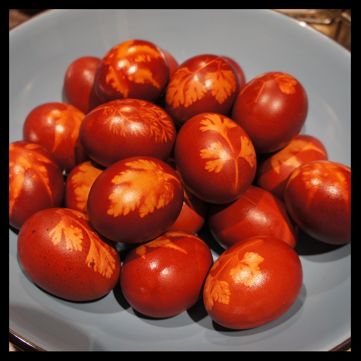 This section explains how we coloured our eggs so that they would have plant-leaf silhouettes on them. It can be a bit fiddly, but the end result is beautiful!