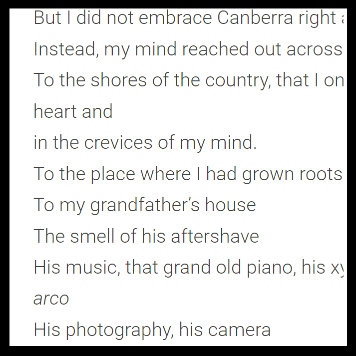 “Dickson” is her first attempt at poetry, and was produced during a 3-minute writing exercise during a Mother Tongue poetry workshop run by Vesna Cvjetićanin.