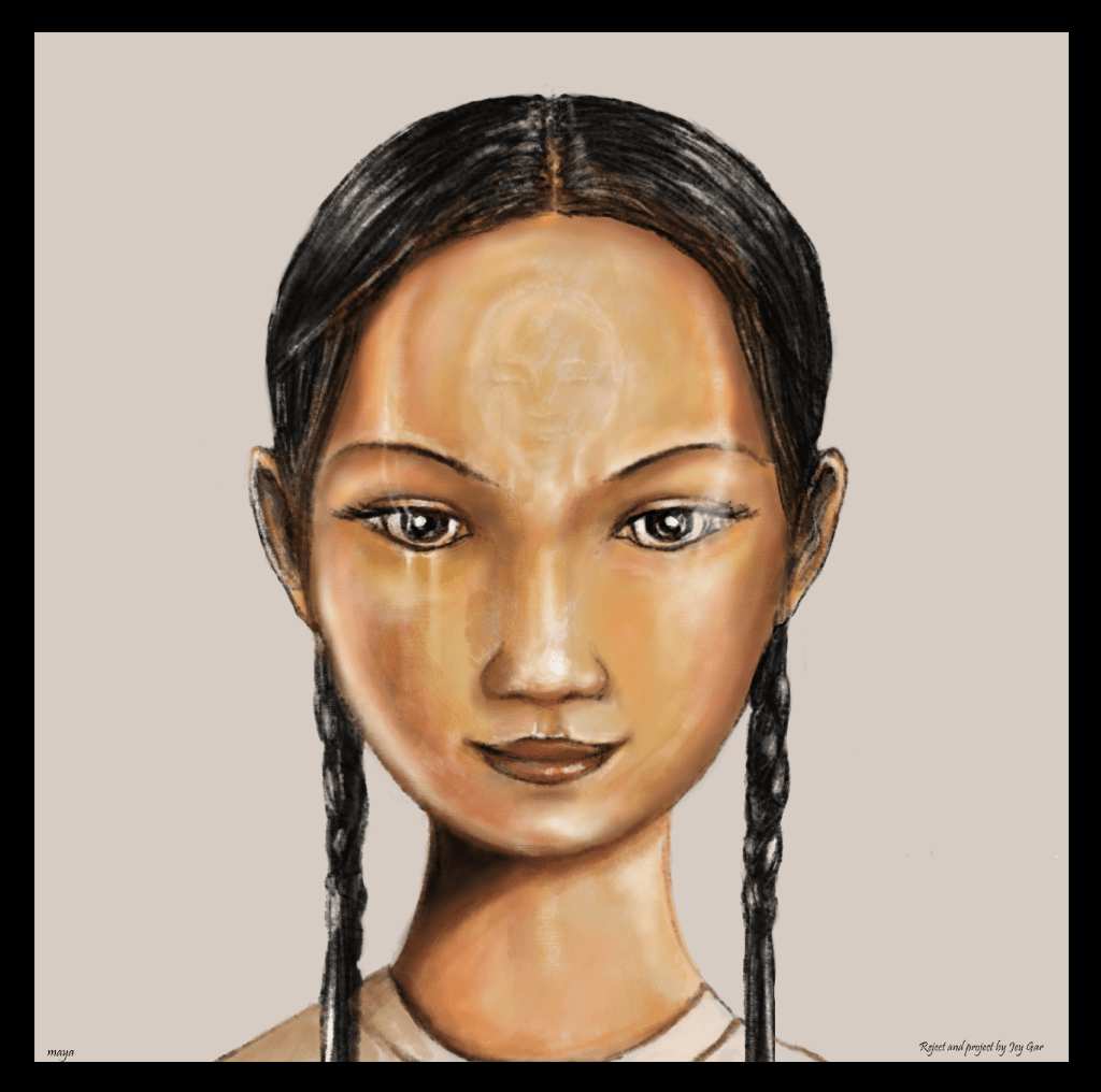This painting depicts the mind’s inability to handle the vastness of reality. This then leads to the mind and the senses cutting out, or rejecting so much from the world around us, leaving a tiny fraction which is used to project a version of reality we finally experience (depicted by the light being taken from the young woman’s right eye and then clouding her left eye). The mind possibly uses this limiting mechanism of rejecting and projecting (called maya) to construct a Virtual ‘I’ (VI) or the ‘I’ that we associate with our identity such as our name, nationality, culture, abilities, history etc. – depicted as the wispy figure on the woman’s forehead.