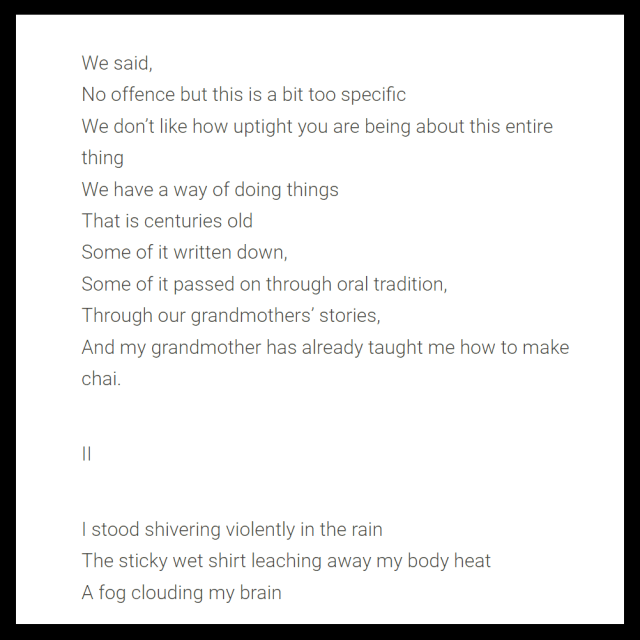 Poems by belongingmagJun 27, 20215:01 pm Read More CHAI POEM: Shehzad Hathi recollects conversations had over chai.